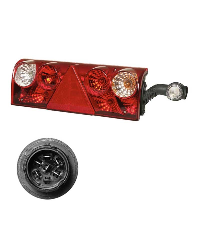 Fanale posteriore EUROPOINT 2 destro con connettore 7 poli. Il fanale viene fornito completo di lampadine. Questa versione ha la luce d’ingombro a LED integrata sul fanale.