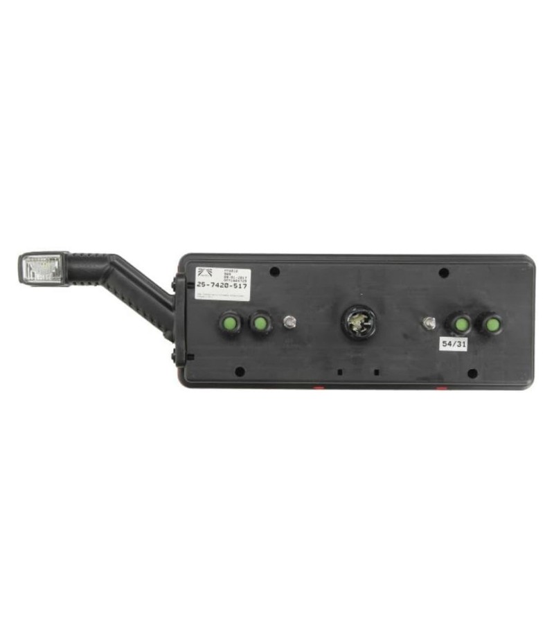 Fanale posteriore EUROPOINT 3 destro con connettore 7 poli e posizione a guida luce a LED. Questa versione ha la luce d’ingombro a LED integrata sul fanale e 4 connettori 2 poli ausiliari collegati 3 alle posizioni ed uno allo stop.