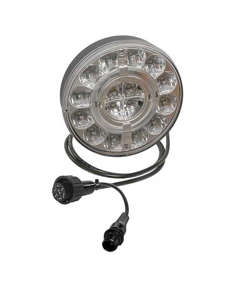 Il BRASPOINT è un fanale FULL LED con le luci di posizione con guida luce. Esiste nella versione con diametro 98mm e quella con diametro 140mm. Questa è la versione da 140mm con le funzioni di posizione, stop e freccia. Il cavo è da 0,5m cablato con il connettore 7 poli Aspock e la derivazione per collegarsi al fanale con retronebbia/retromarcia.