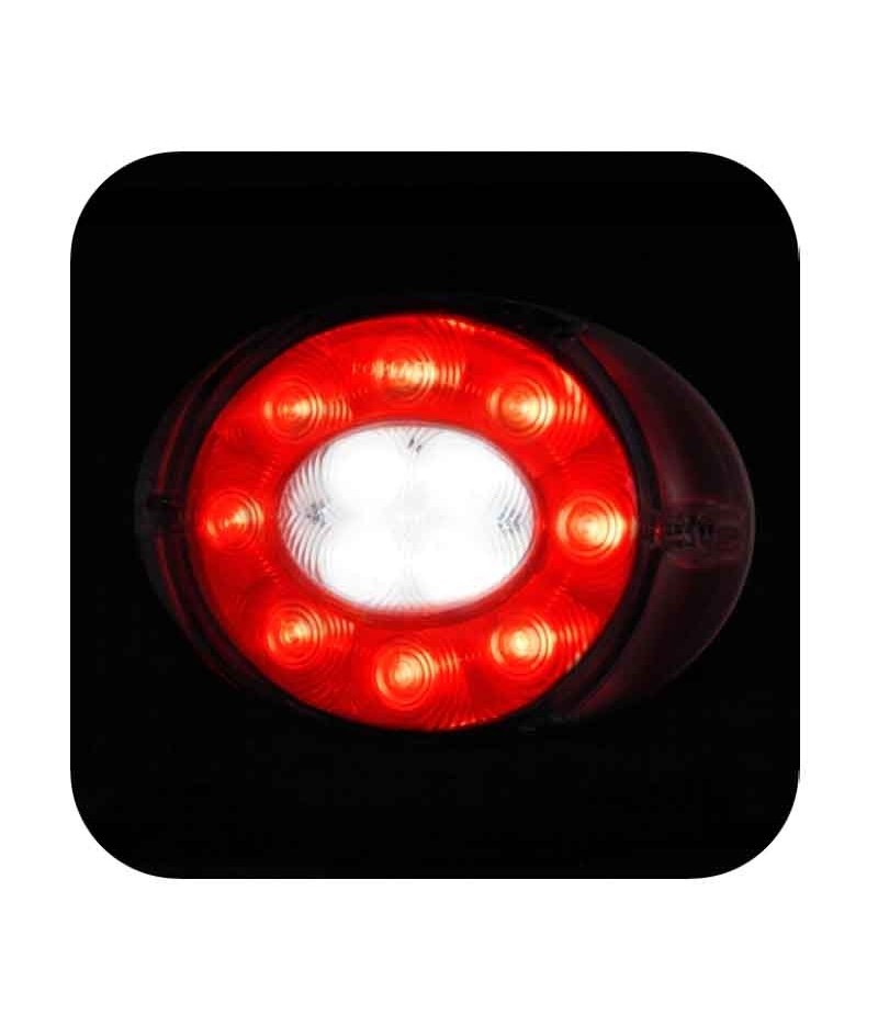 Fanale 2 funzioni interamente a LED ovale con cavo d 0,5m. Modulo compatto e resistente grazie alla sua lente in policarbonato infrangibile. La tecnologia con guida luce a led utilizzata da prima solo nel mercato autoveicoli, lo rende moderno e accattivante. È completamente resistente all'acqua e agli agenti atmosferici. Da abbinare agli altri fanali della serie per completare le funzioni principali. Copre le funzioni di retronebbia e retromarcia.