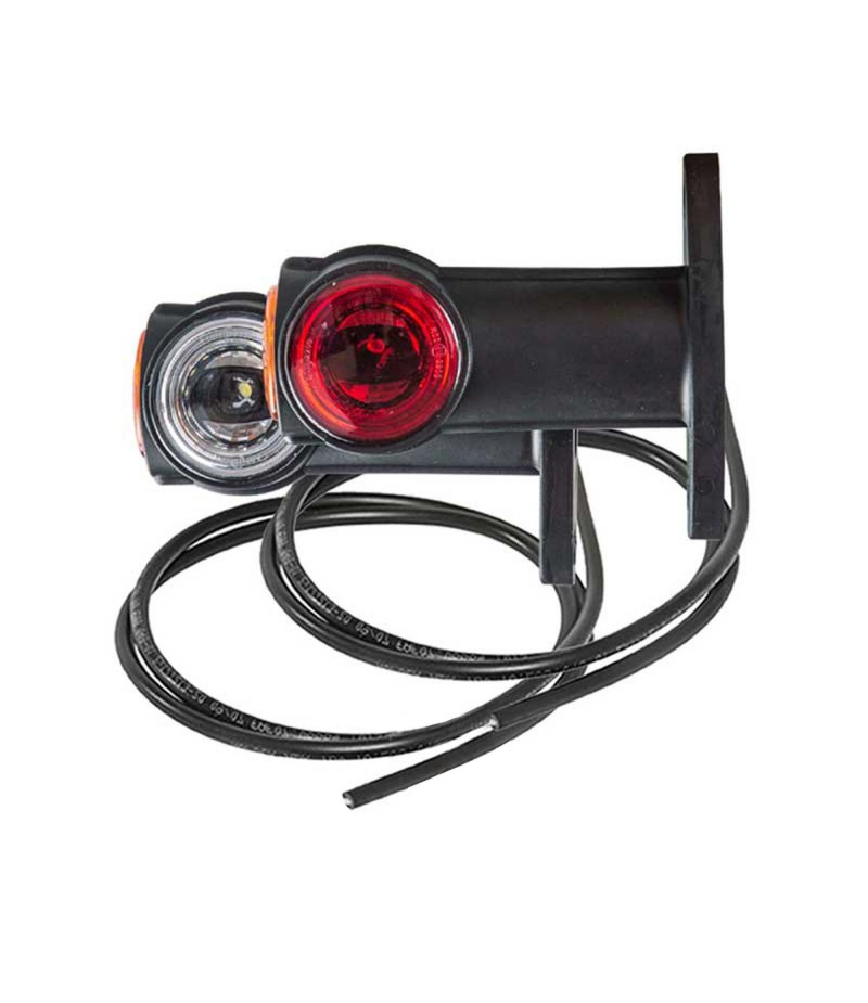 Coppia di luci di ingombro interamente a LED modello dritto con cavo 1,75m sguainato in testa, luce laterale e staffa in gomma flessibile.