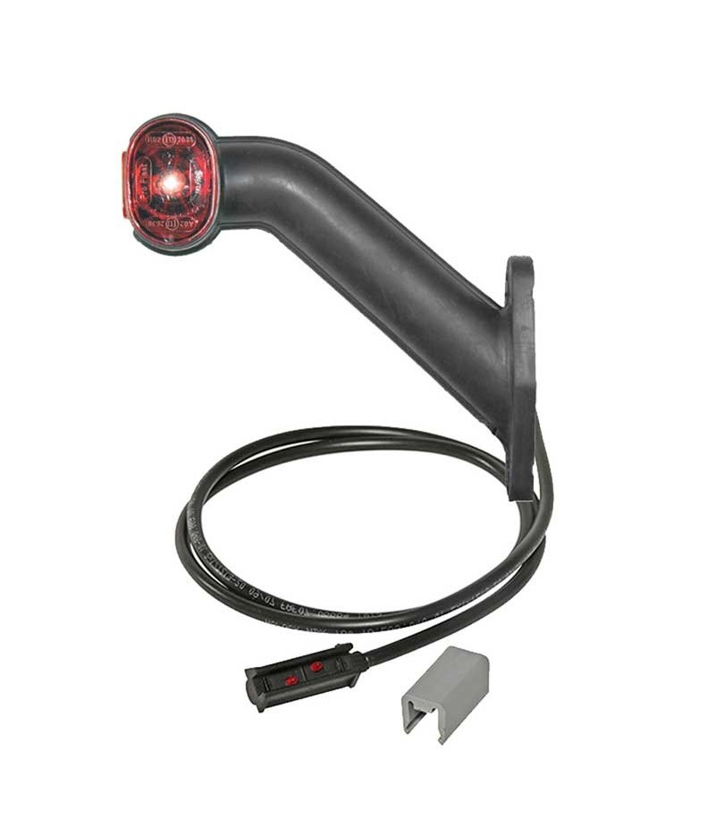 Le luci d'ingombro fanno parte dei dispositivi d'illuminazione primari. Utilizzate per l'allestimenti di tutti i rimorchi , semirimorchi ed altri mezzi agricoli trainati. Luce di ingombro sinistra interamente a LED con cavo da 1,25, connessione P&R e staffa corta in gomma flessibile per ECOPOINT. Con la gemma in policarbonato resiste a urti e usura.