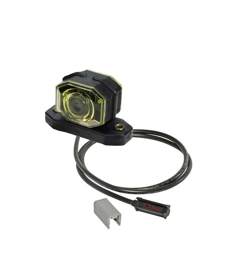 luce di ingombro corta SUPERPOINT con luce rossa/bianca con lente realizzata in policarbonato resistente agli urti e sistema a camera doppia per una alta resistenza all'acqua. Ha un cavo da 1,75M con connessione P&R.