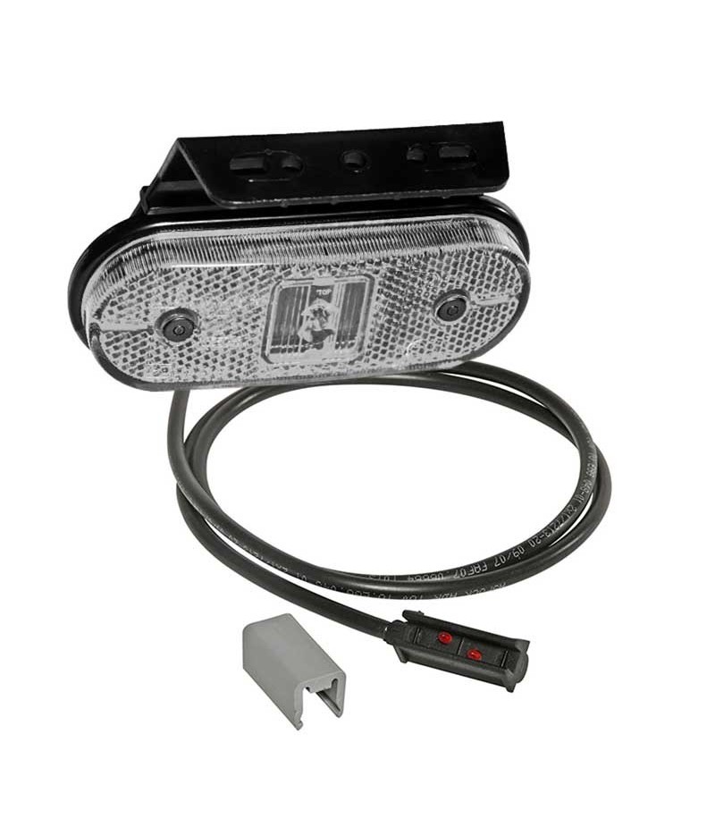 Luce di ingombro bianca interamente a LED con cavo da 0,5m e connessione P&R con staffa rivolta in avanti.