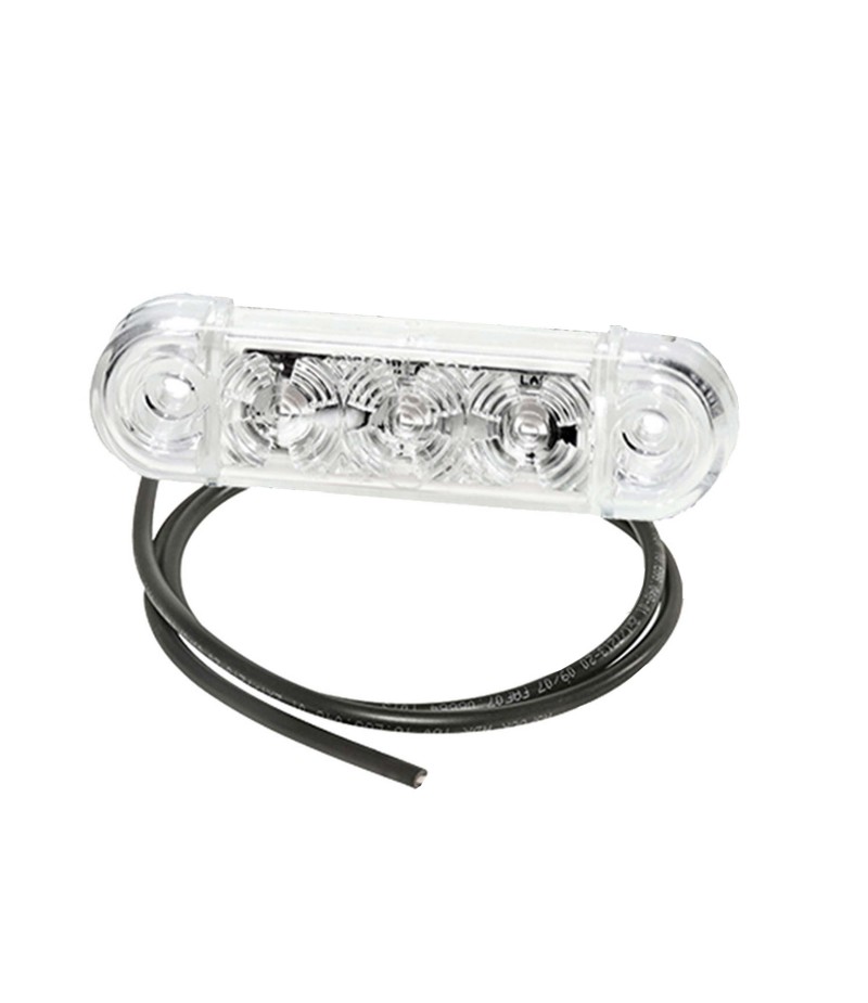 Le luci d'ingombro fanno parte dei dispositivi d'illuminazione primari. Utilizzate per l'allestimenti di tutti i rimorchi , semirimorchi ed altri mezzi agricoli trainati. Luce di ingombro anteriore interamente a LED bianca con cavo da 0,5m sguainato in testa. I modelli estremamente piccoli hanno un vantaggio in quanto possono essere installati quasi ovunque. Con una dimensione di soli 65mm x 18mm x 10mm, il RO-SLIM LED sfrutta questo vantaggio al massimo. Naturalmente non dobbiamo dimenticare che estremamente piccolo significa anche un consumo energetico estremamente basso, 0.45 watt a 12 volt e 0.9 watt a 24 volt. Hanno una struttura estremamente flessibile.