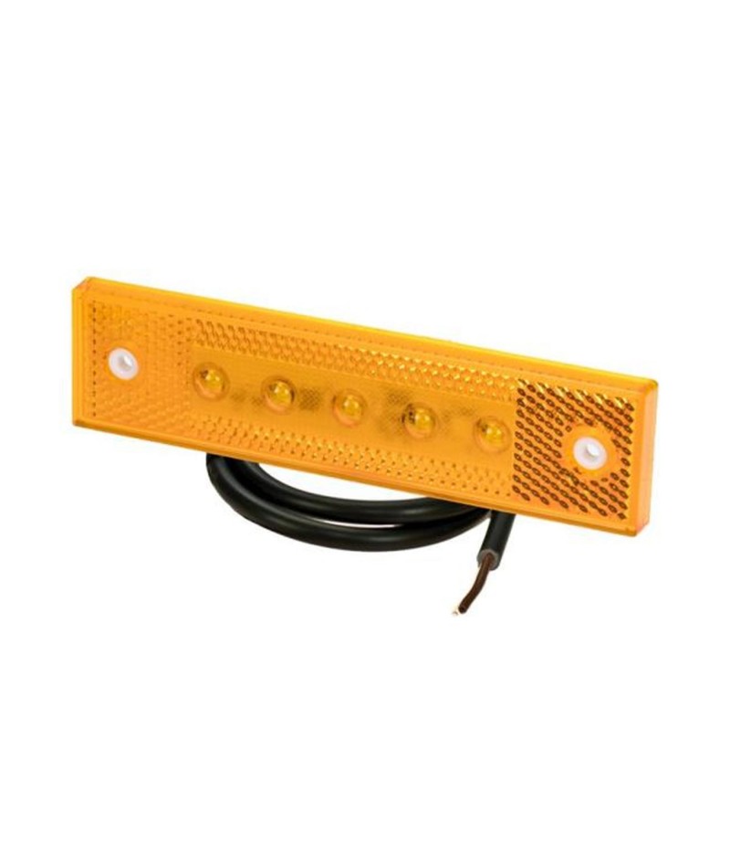 Luce laterale arancione a LED da appoggio con catadiottro riflettente e cavo da 0,5m sguainato in testa.