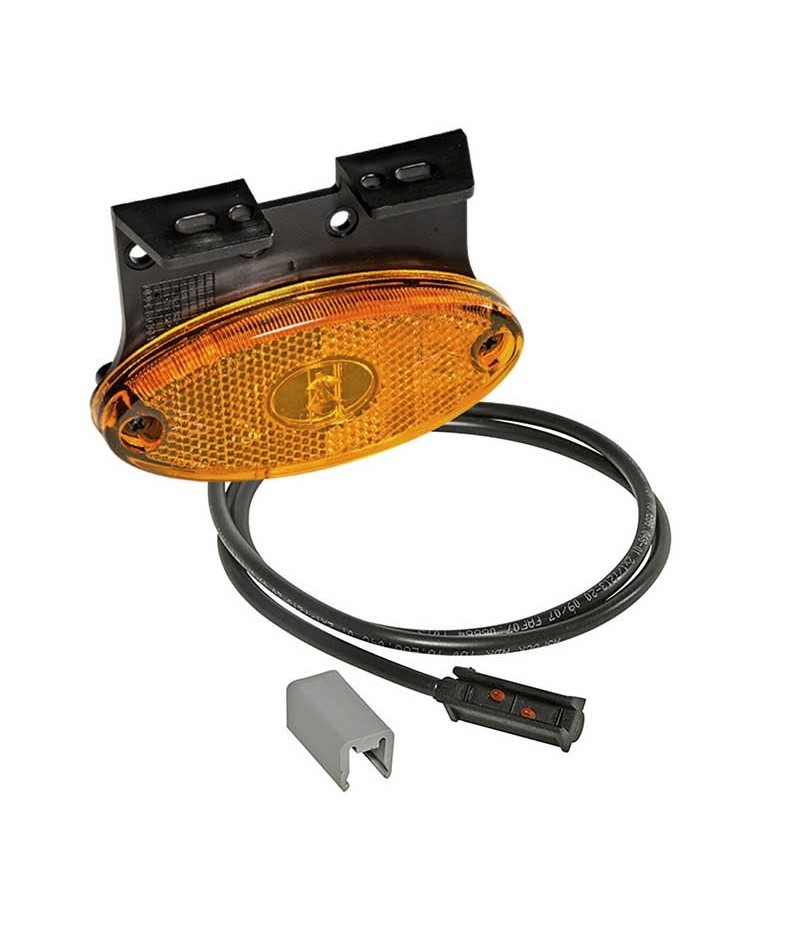 Luce laterale arancione a LED con cavo da 1,5m P&R, resinato direttamente nel fanalino e staffa di fissaggio rivolta in avanti.