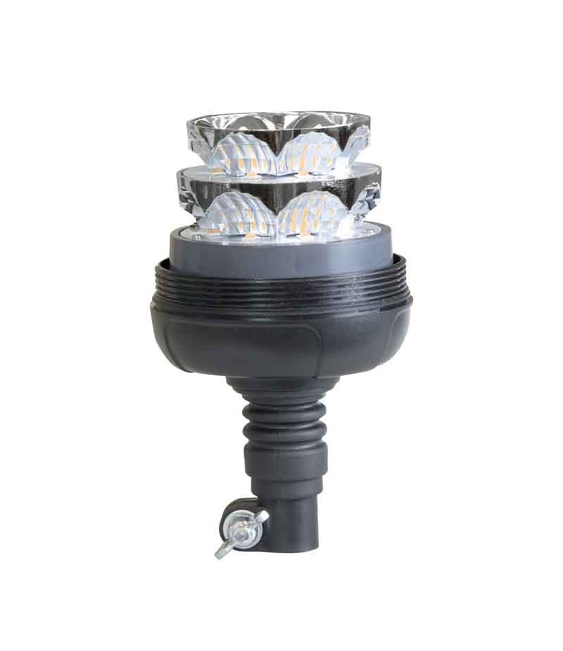 Lampeggiante a LED FABRILCAR, con profilo alto. La sua caratteristica sta nelle diverse tipologie di luce: luce rotante, flash singolo, doppio e flash di tipo veloce. Ha un consumo di soli 12W una resistenza agli agenti atmosferici IP67. Tra le sue qualità annovera le certificazioni: ADR zone 2, ER10, ER65 (solo con funzione rotante) e EMC. Può funzionare con voltaggi che vanno da 9 a 30V e temperature tra -30 e +50°. Viene fornito con connessione asta DIN flex.